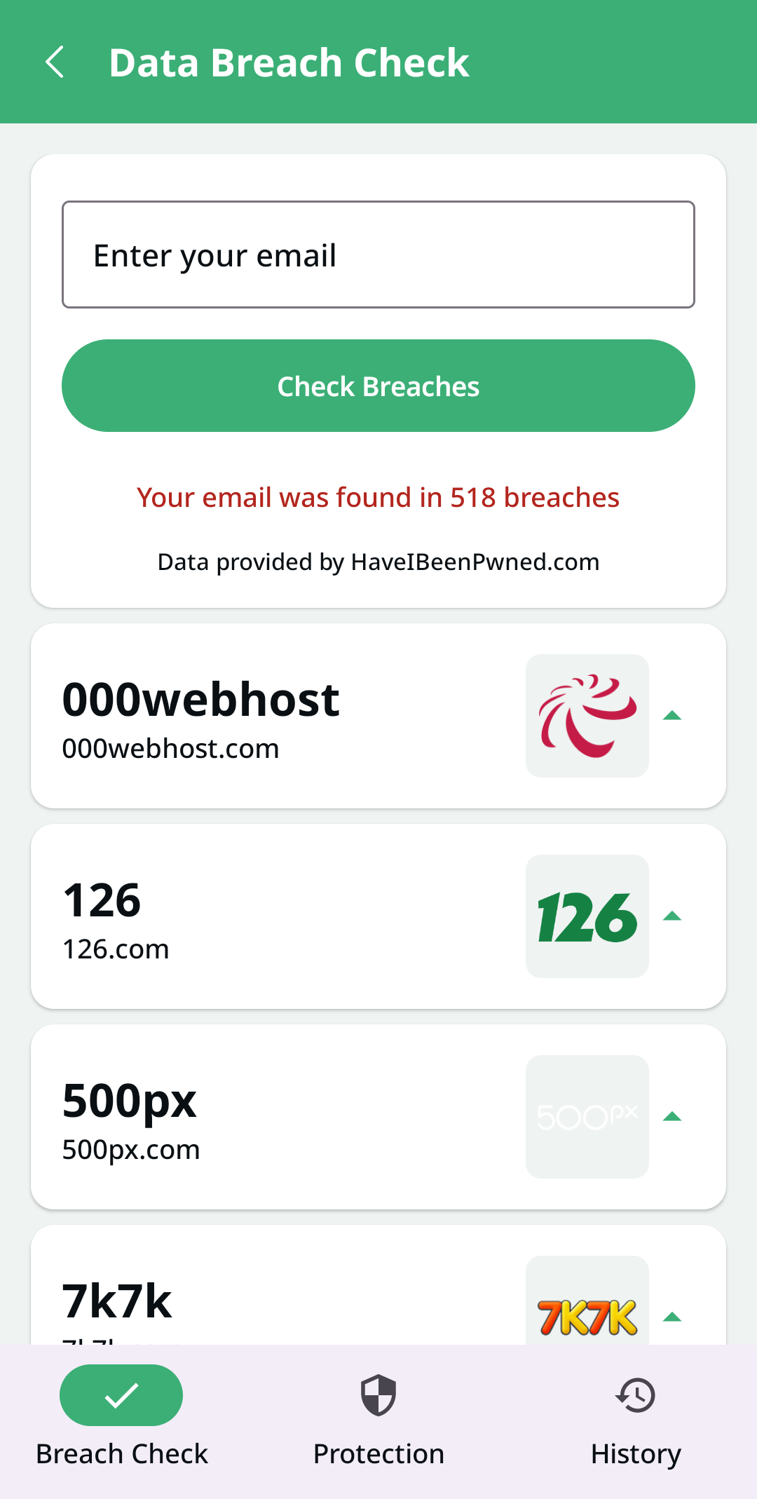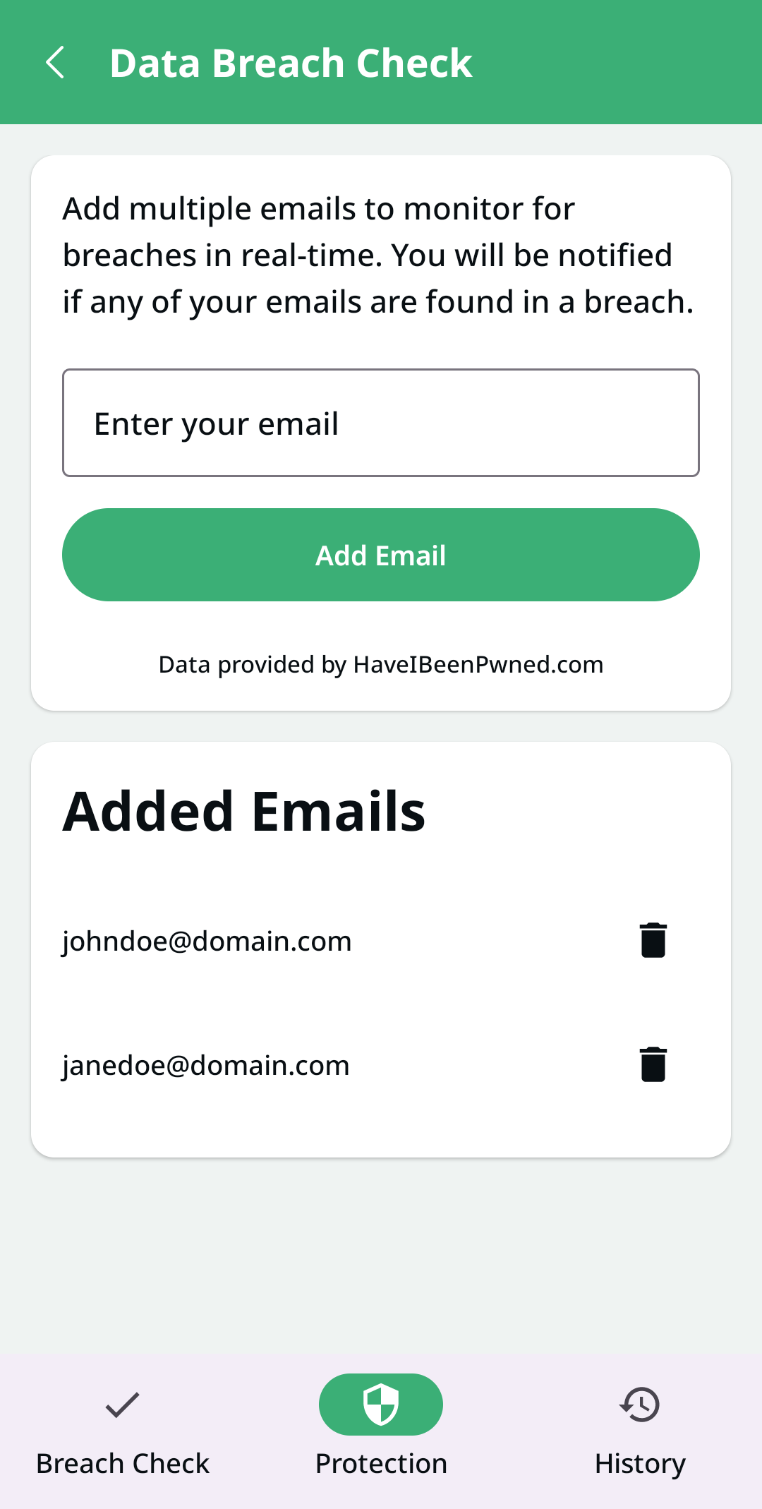 Our system continuously monitors databases of known security breaches across the internet. When your email address appears in a compromised database, you receive an immediate notification, allowing you to change passwords and secure accounts before attackers can exploit the leaked information.